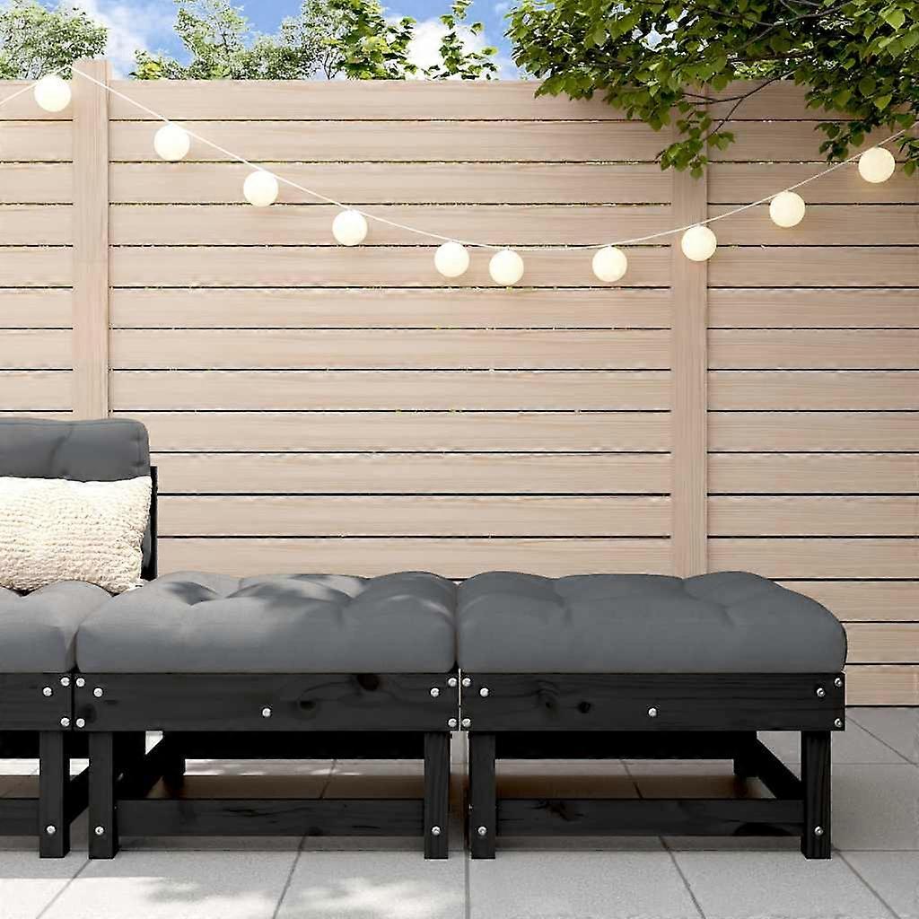 Gartenhocker mit Kissen 2 Stk. Schwarz Massivholz Kiefer