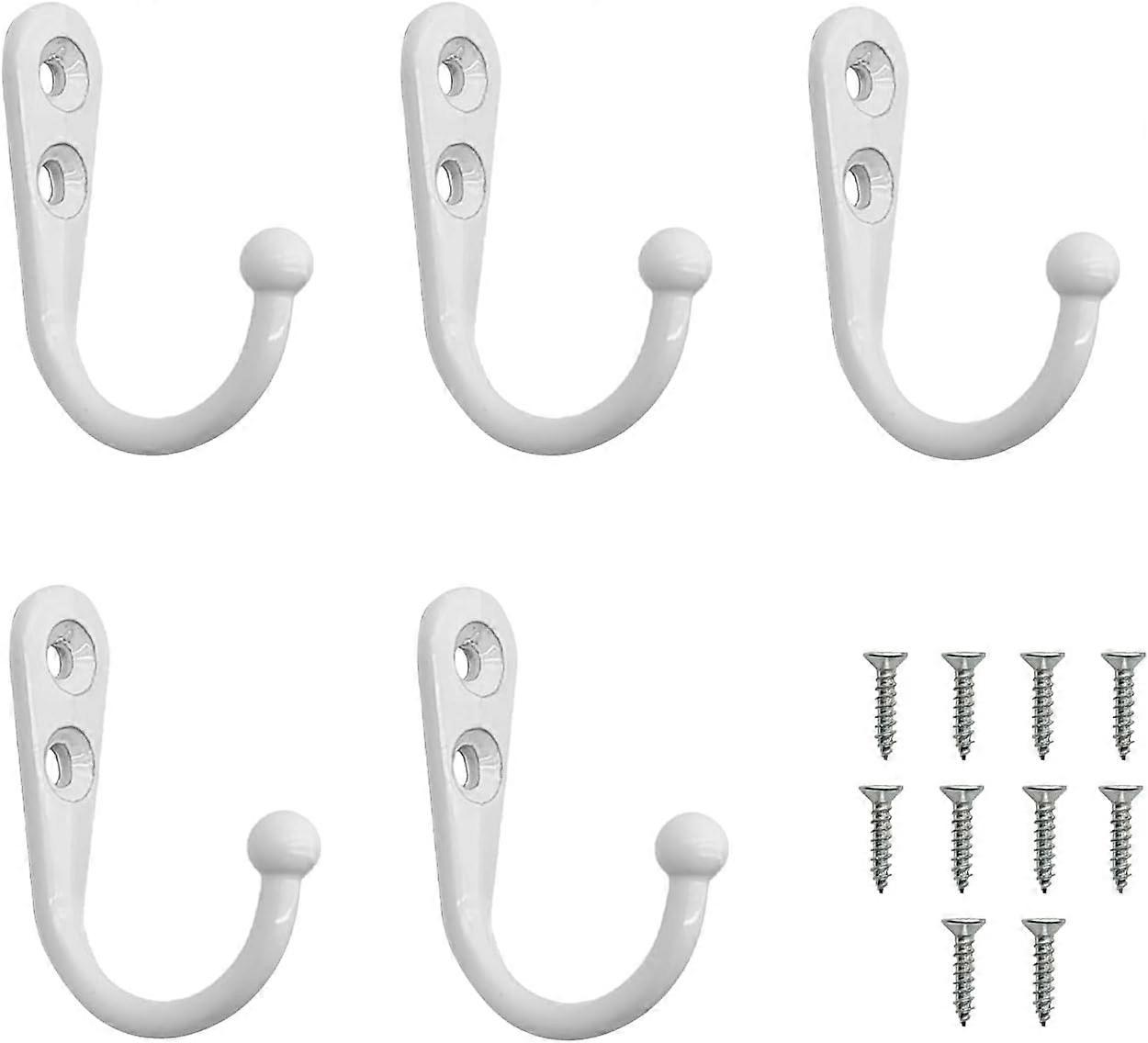 Coat Hooks, 5 Pcs Single Prong Robe Hooks with 10 Screws Wall Mounted Clothes Hooks Metal Robe Hooks for Kitchen Bathroom