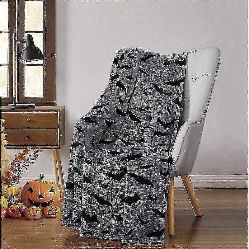 Halloween Throw Blanket Black Bats on Gray Velvet Soft Fleece, Extra Large 70"x50" Flannel Blanket for Sofa Bed Couch, C-pkjhg188