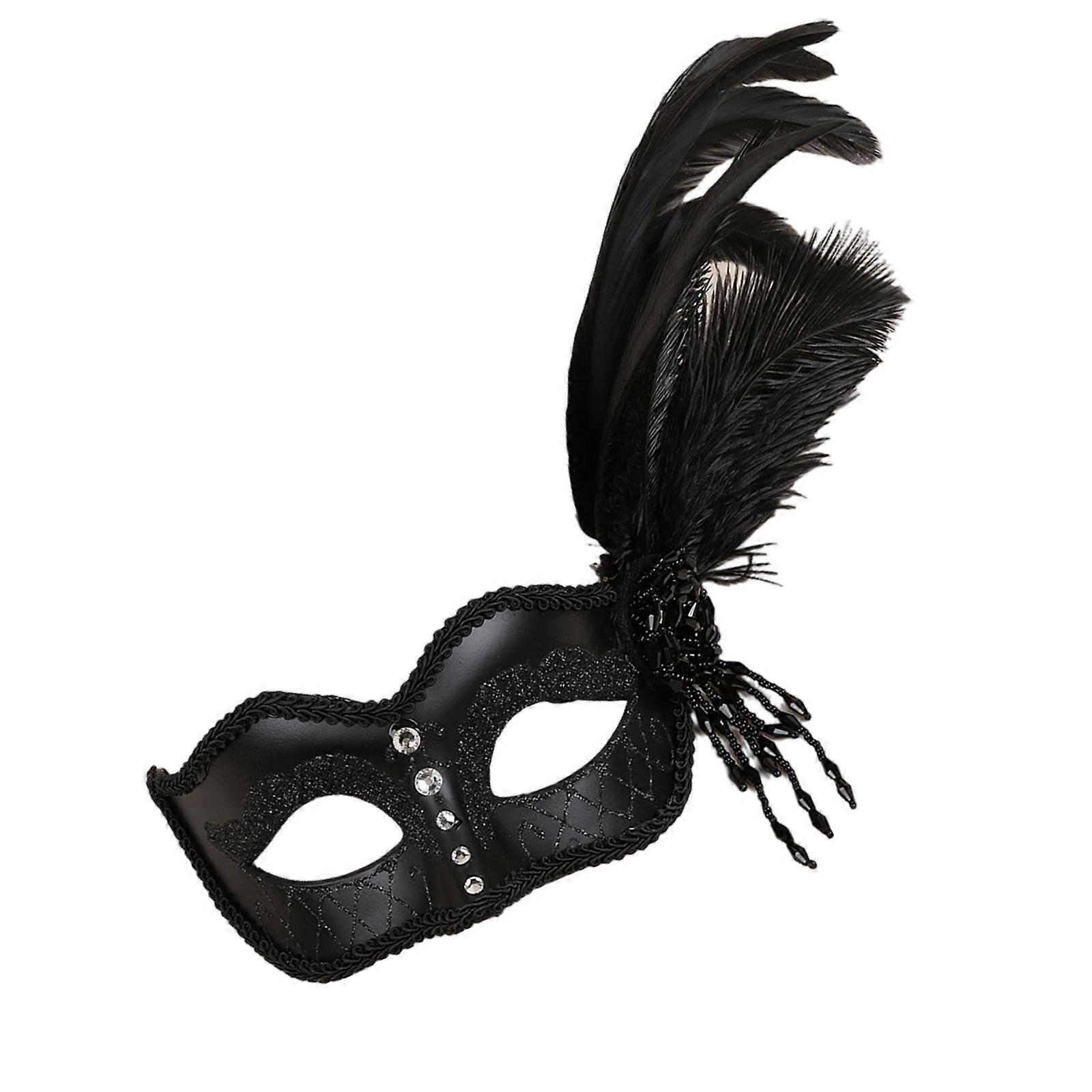 Halloween Mask,Masquerades Venetians Mask Feather Glitter Eye Mask,Half Face Masquerades Mask for Carnivals Ball Dress Party Black