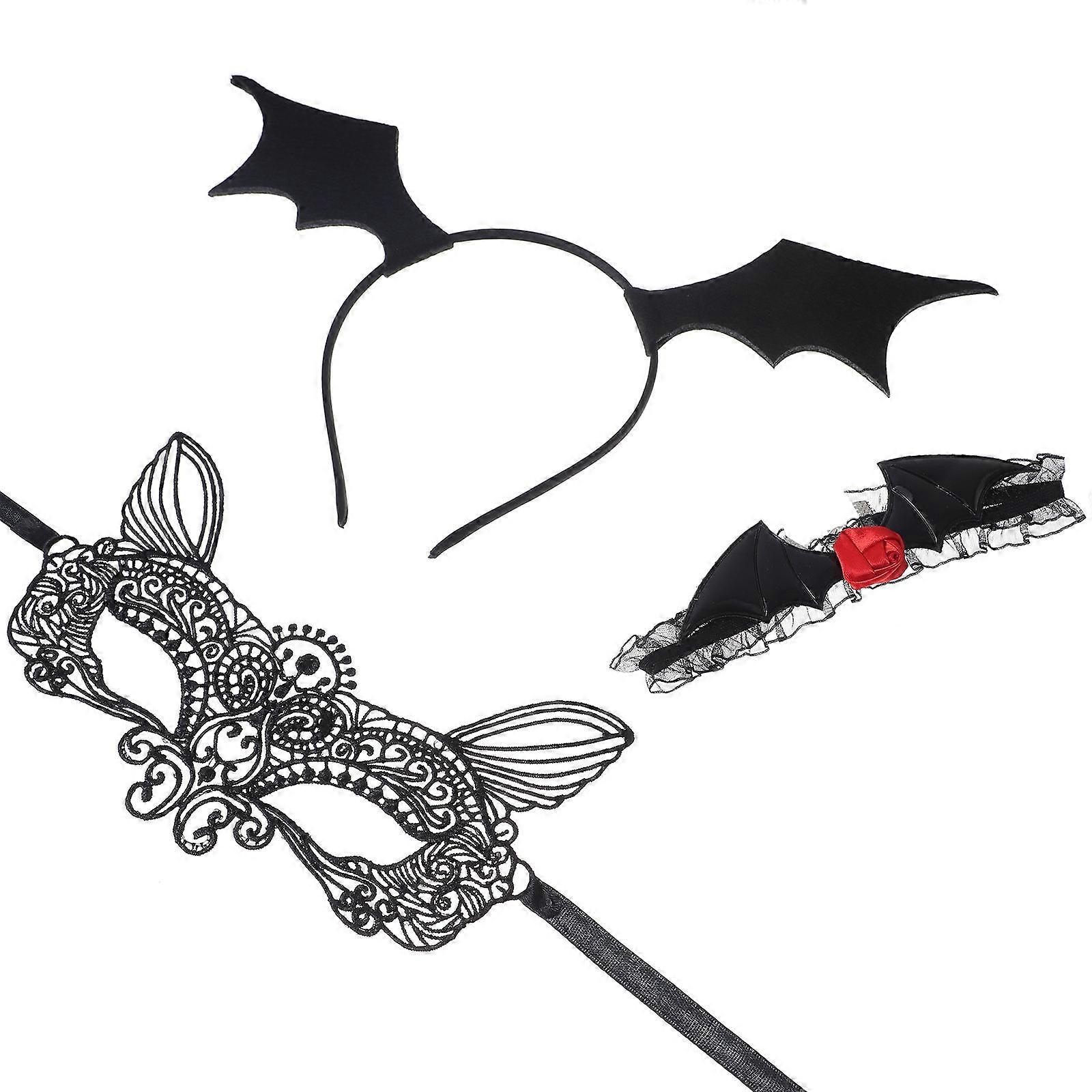 Halloween Accessories Bat Headband with Lace Mask and Choker 1Set