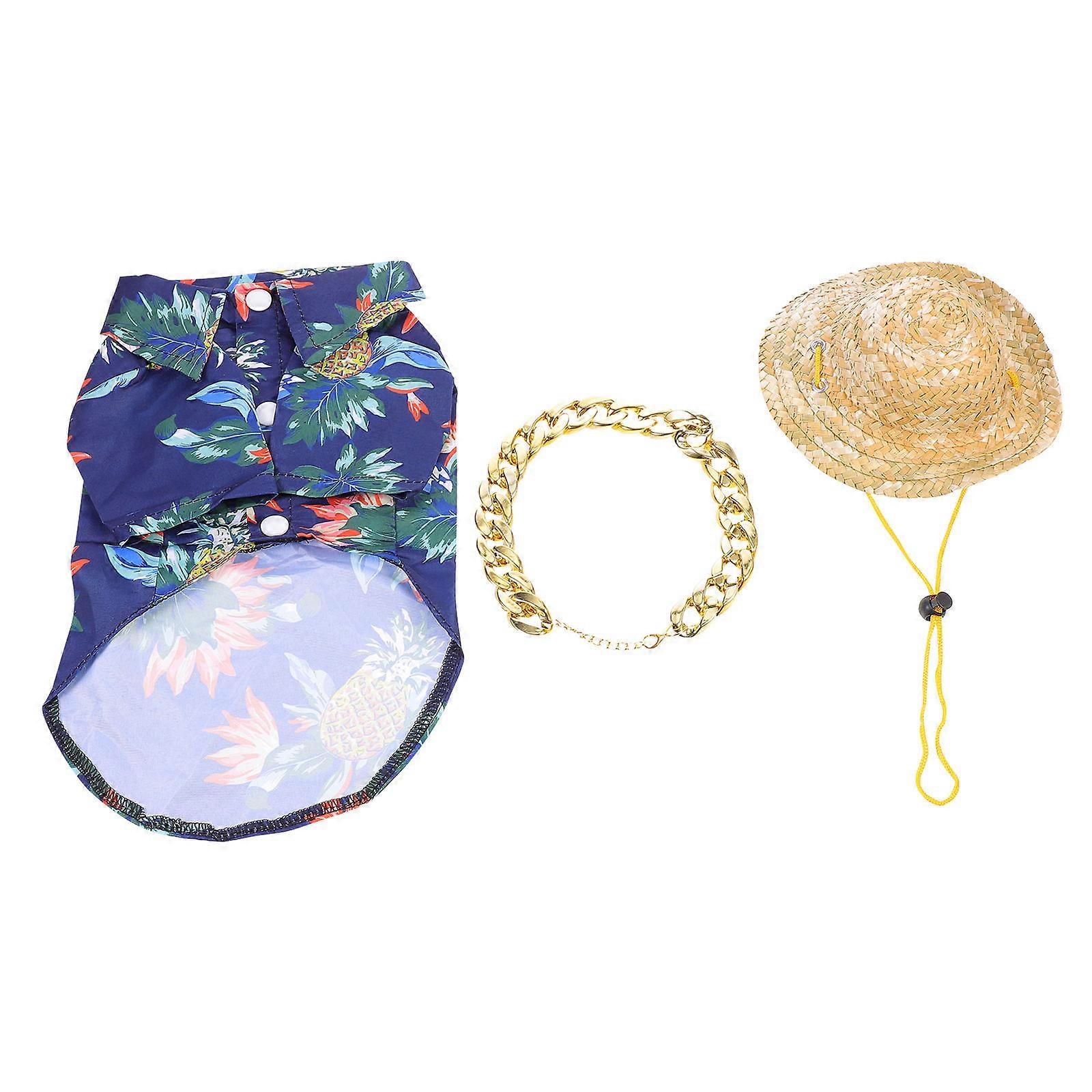 Pet Dog Hawaiian Costume Set with T-Shirts and Necklace 6Pcs