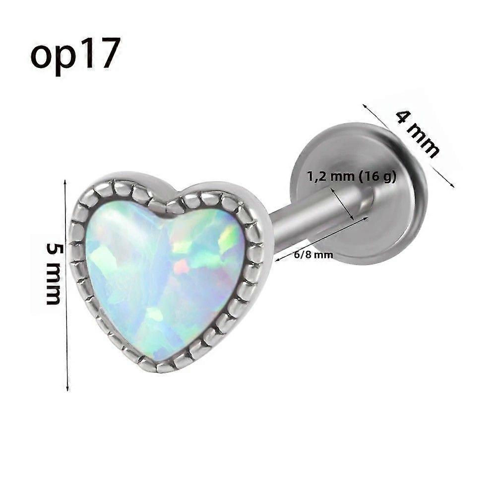Helix Tragus Needle Opal Heart Surgical Steel Labret Lip Piercing Jewelry Internally Threaded 1.0mm Screw Fit 16G