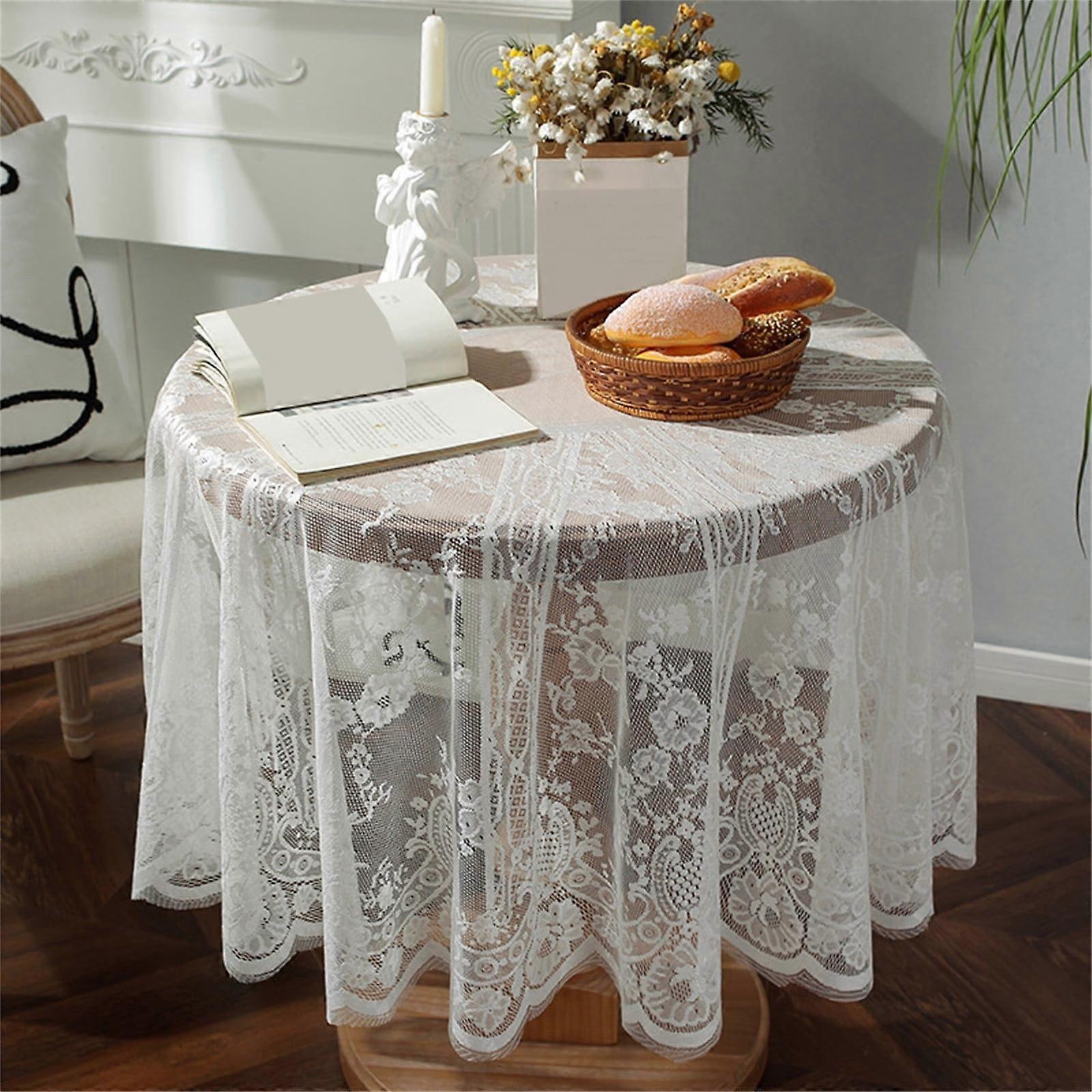 HKUKY Round Table Tablecloth Lace Style Coffee Table Round Lace Hollow Table Cloth