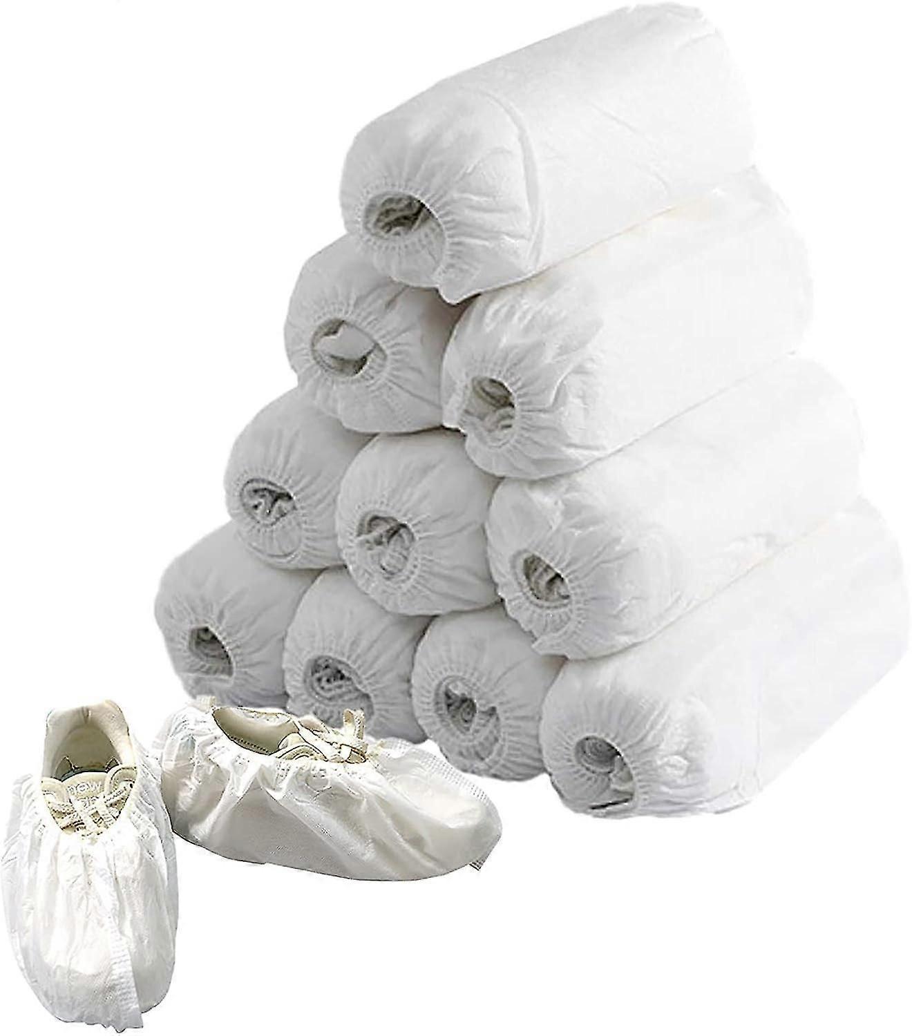 Disposable Shoe Covers 100 Pack Non-Woven Fabric for Carpet Cleaning & Floor Protection, White