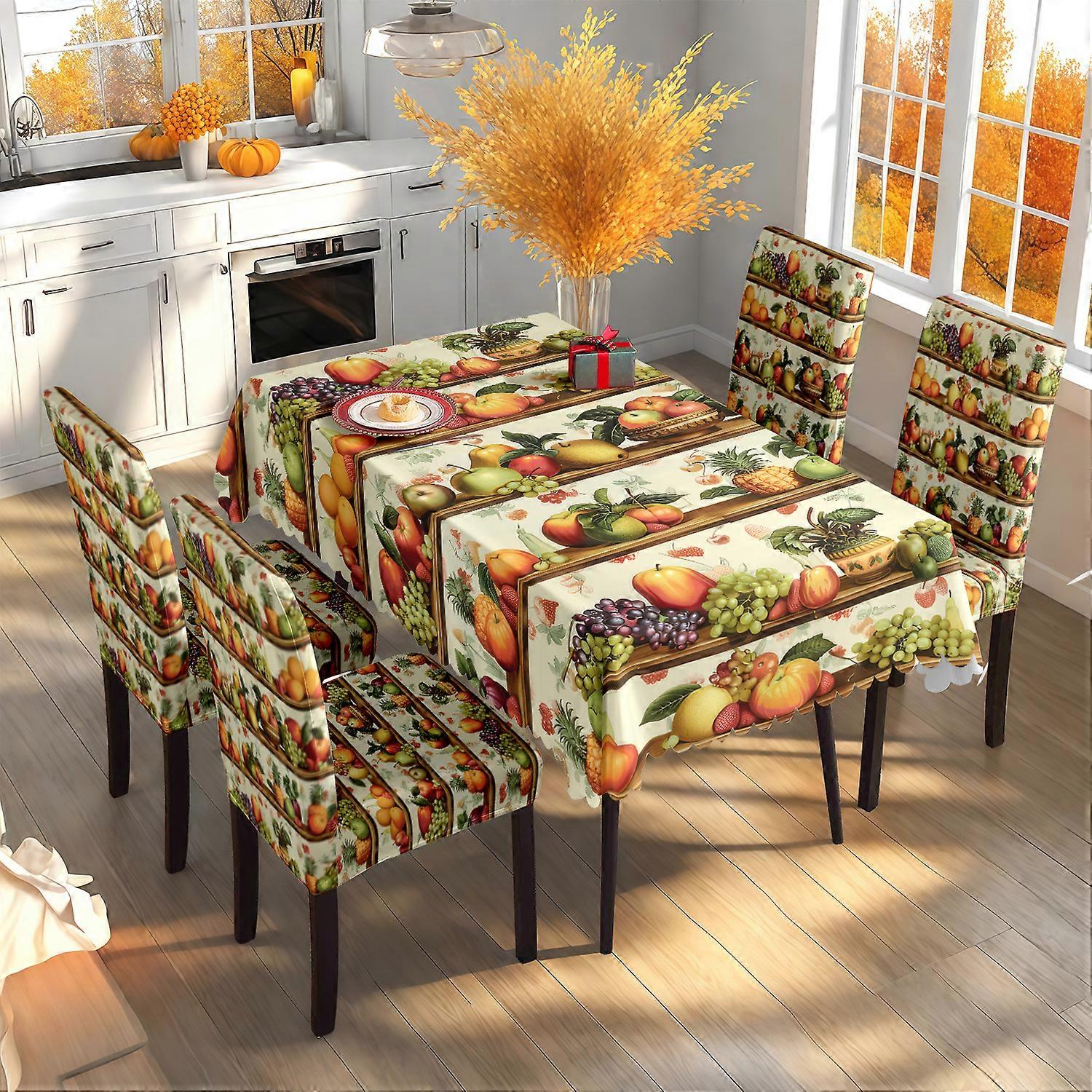 Thanksgiving Dining Table and Chair Dust Cover Autumn Harvest Maple Leaf Pumpkin Print Restaurant Fabric Tablecloth Set TC-263 Set (140*210cm