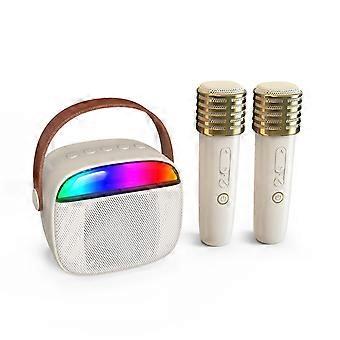 Dětský karaoke automat, přenosný Bluetooth reproduktor se 2 bezdrátovými mikrofony, béžovo-bílý