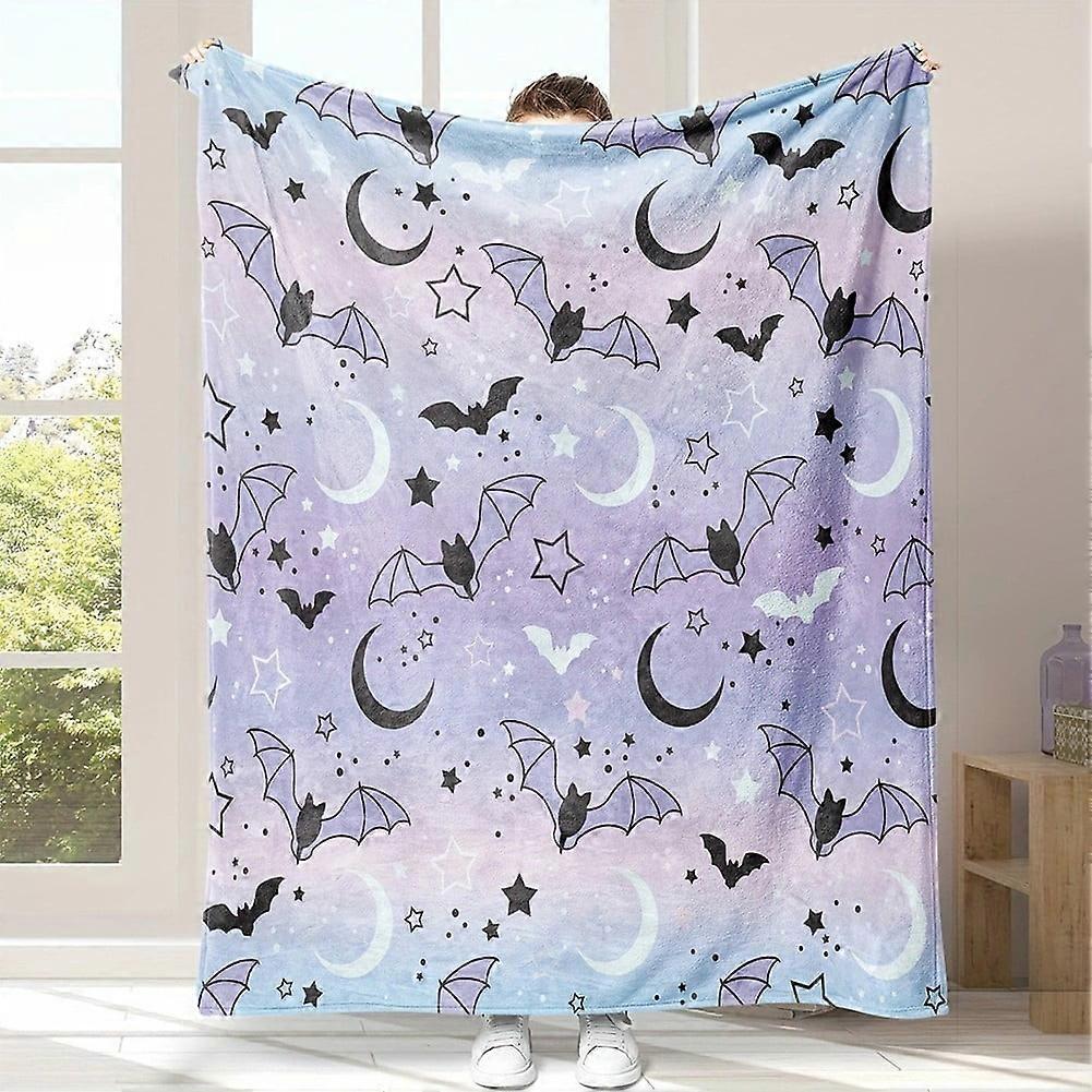 KARLSITEK Halloween Printed Blanket Throw Bat Pumpkin ghost Plush Witch Hat Travel Warm Fluffy Blanket for Halloween Home Party Decorations