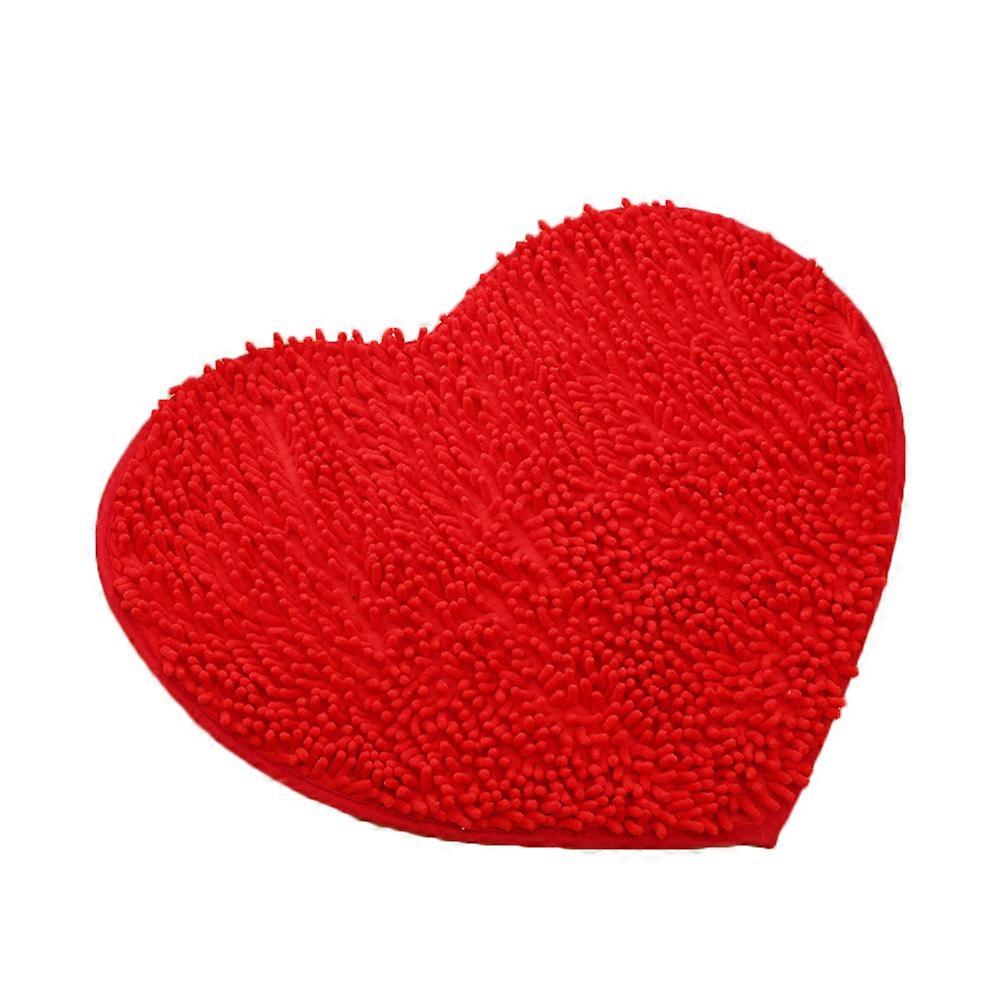 Red Heart Shaped Rug Non Skid Area Carpet Bathroom Use Chenille Material 60x5cm Dust Prevention 1Pack