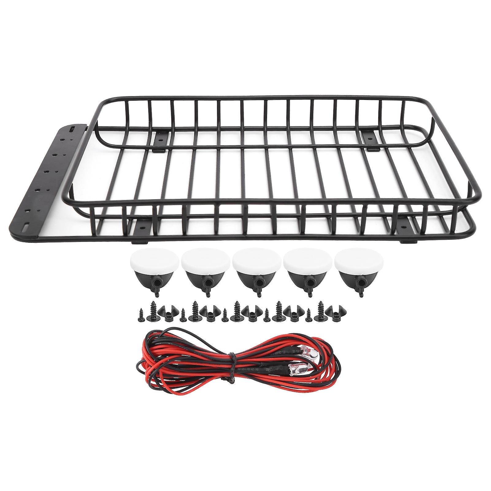 Metal Roof Rack Luggage Carrier with LED Light Fit for Traxxas TRX‑4/Axial SCX10 90046