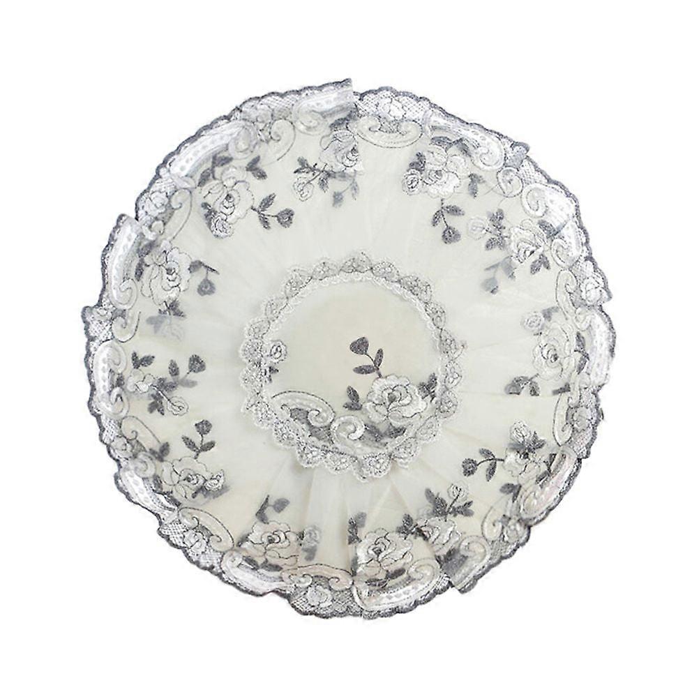 Eease Anti-dust Fan Cover Yarn Rose Pattern Summer Simple Fabric Fan Dust Cover Desktop Floor Type Round All-inclusive Cover (Gray)