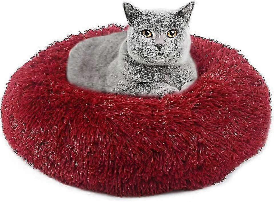 Round Anti-Slip Donut Cat Bed for Indoor Cats, 40 CM