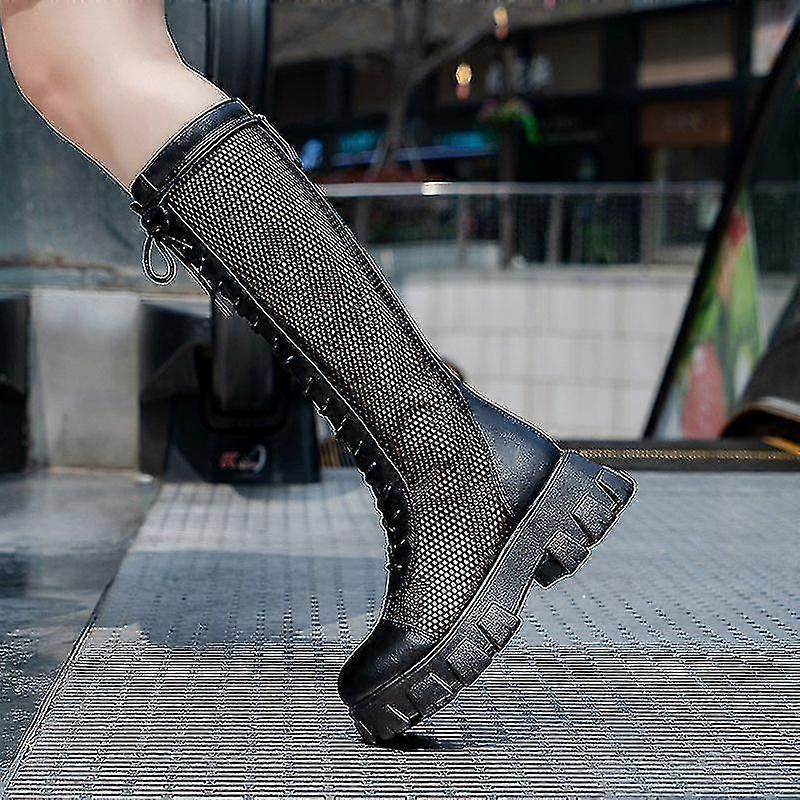 Summer Boots Women Chunky Heel Knee-length Platform Woman Female Round Toe Zipper Sandals Mesh Ladies Fashion Comfort Shoes Tw