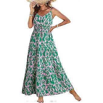 Summer Dress Casual Womens Boho Dress Sleeveless Printed Long Tiered Dress Beach Dress 2025