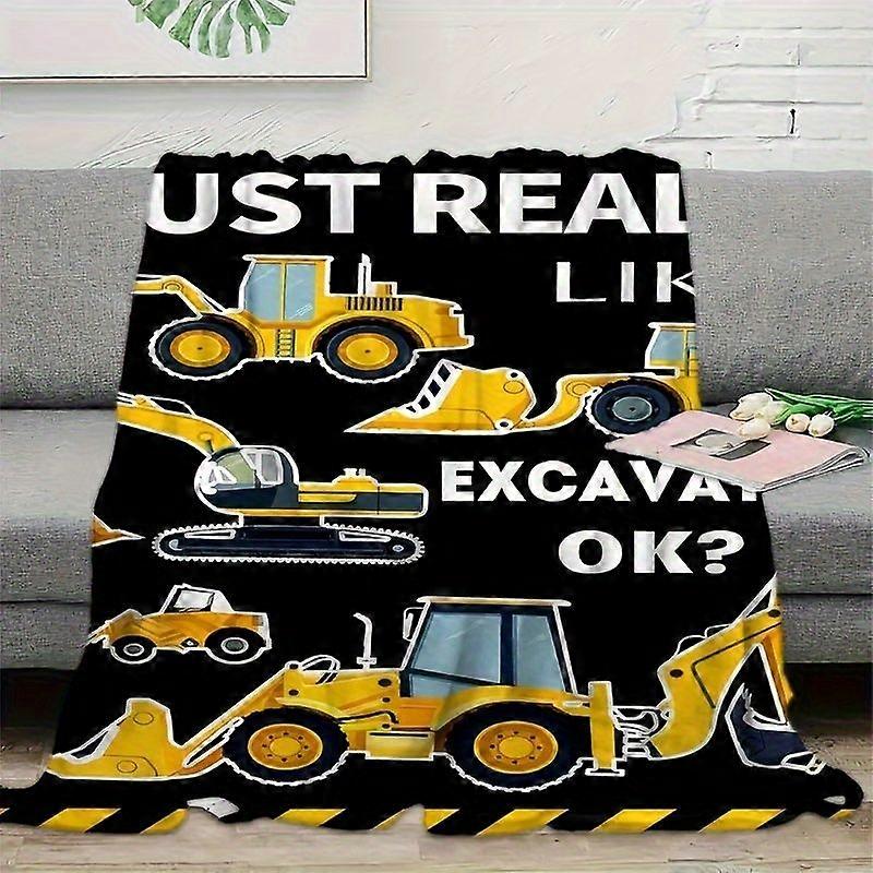 Luxury 1pc Excavator Print Blanket, Flannel Blanket for Son, Soft Warm Throw Blanket Nap Blanket for Couch Sofa Office B-azxcv398