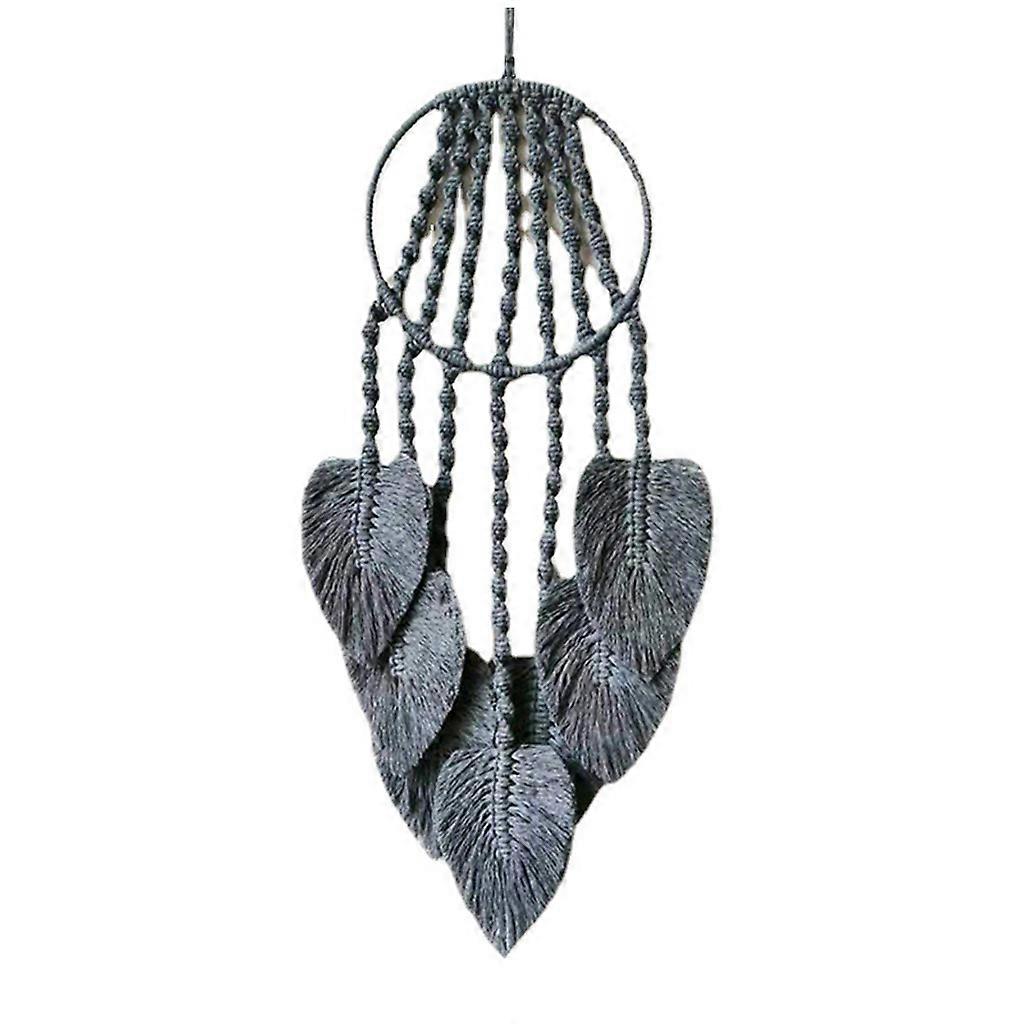 Macrame Wall Hanging Dream Catcher Handmade Woven 7 Leaf Tassel Tapestry for Kids Room Wedding Decoration Grey