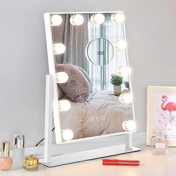 1. [Large Mirror] Size - 18" long x 3.35" wide, large enough to provide a clear view of your upper body 2. [Touch Control] Simply tap or long press the touch buttons to adjust the brightness and temperature, maximum lumens, 15-minute auto-off function to save energy 3. [LED Lighted Mirror] LED lights with 3 color temperature options - from warm light 3800K to daylight 6500K, simulates lighting for different occasions, one mirror for different needs 4. [Zoomable Mirror] Portable and compact 10x zoom mirror to see your face clearly and apply makeup, suitable for eye makeup and hard-to-see skin areas 5. [Wall-mounted Mirror] Saves space on your dressing table. Easily hung on the wall according to the instructions