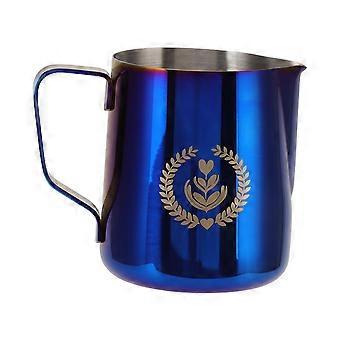 Milk Frothing Pitcher Jug Stainless Steel 350ml Frother Steamer Cup with Scale for Coffee Making Blue