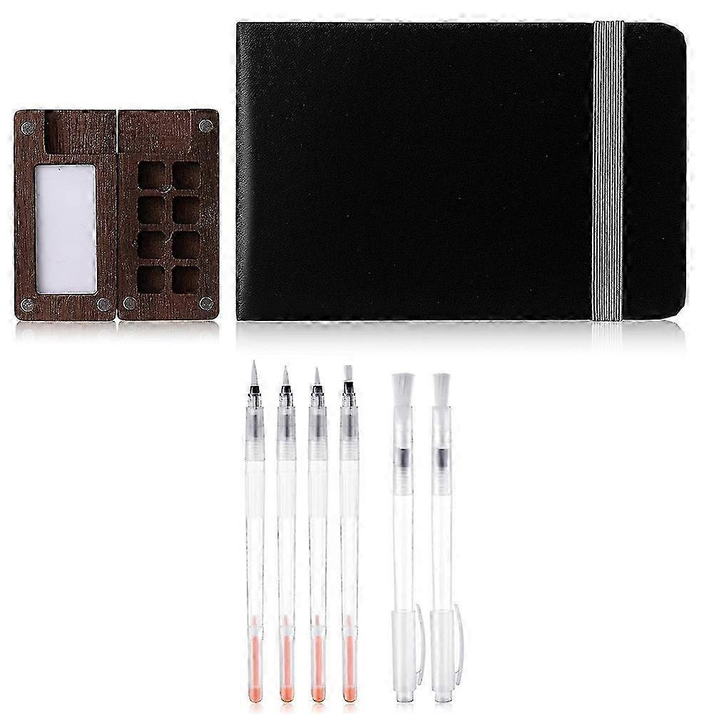Mini Portable Watercolor Paint Set with Wooden Grid Paint Box - Travel Paint Palette for Pocket Sketches