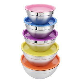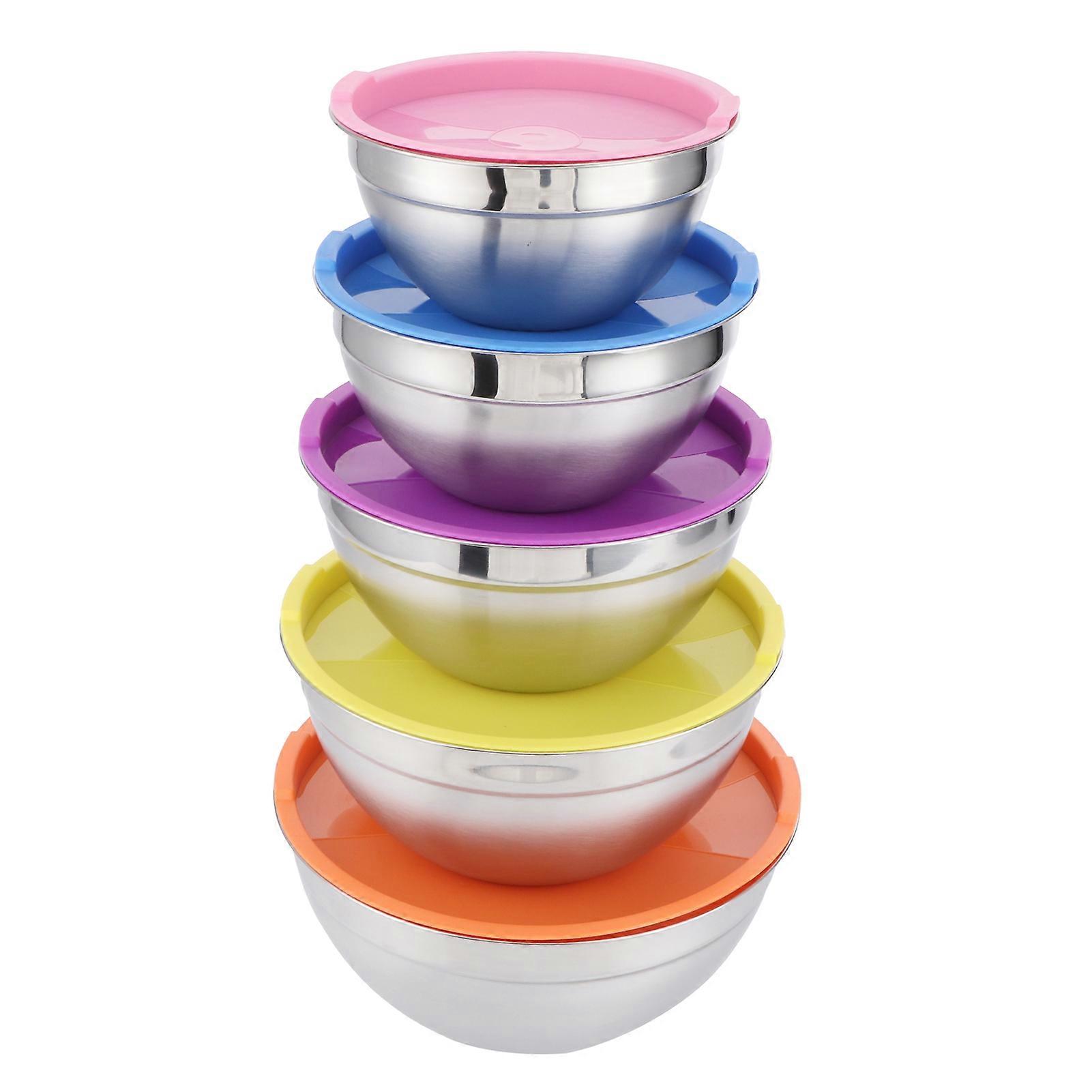Dishwasher Safe Mixing Bowls, 5-Piece Set, Stainless Steel With PP Lid, Non-Toxic, Odorless, Polished Mirror Finish, Ideal For Kitchen Use,