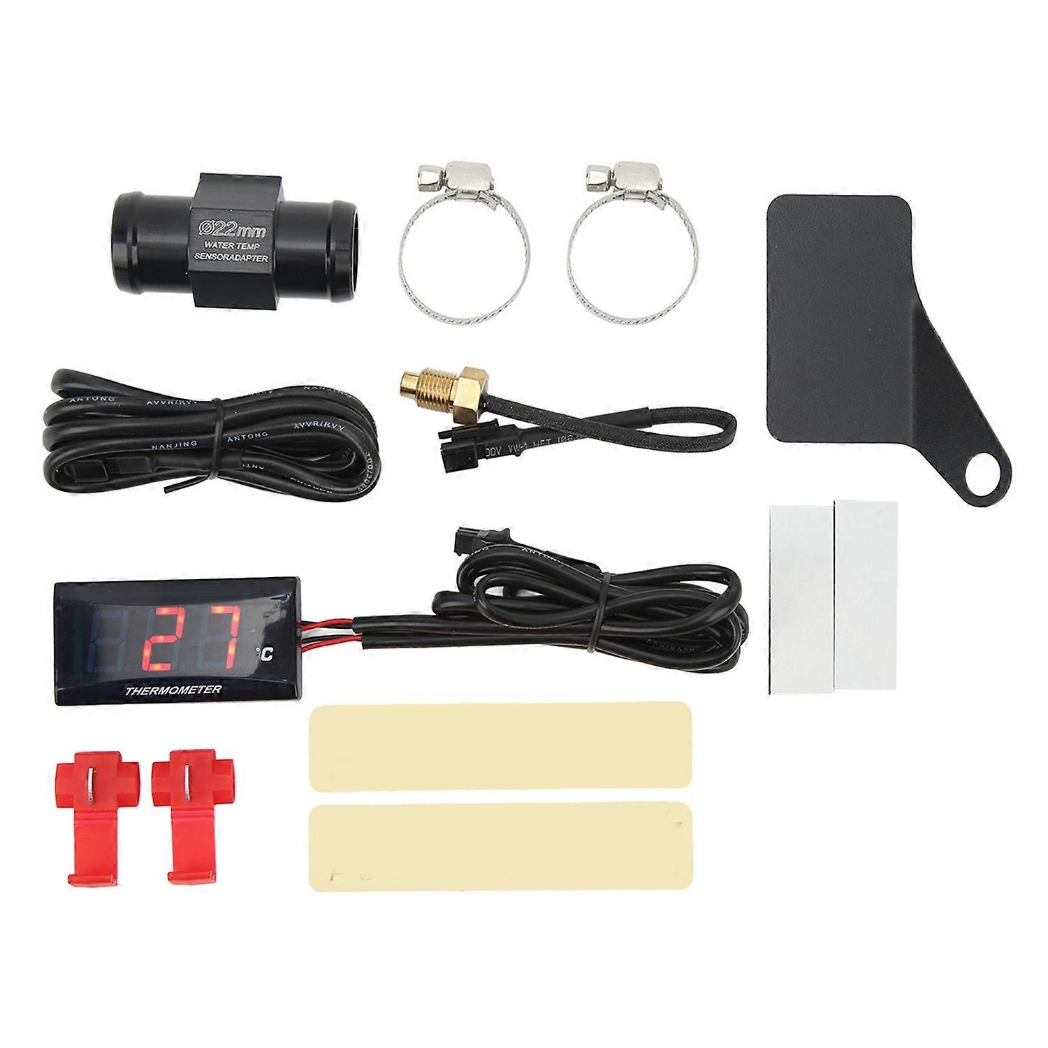 Motorcycle Digital Water Temperature Gauge Ultra Thin DC 12V LCD With 22mm Sensor Adapter for Most M