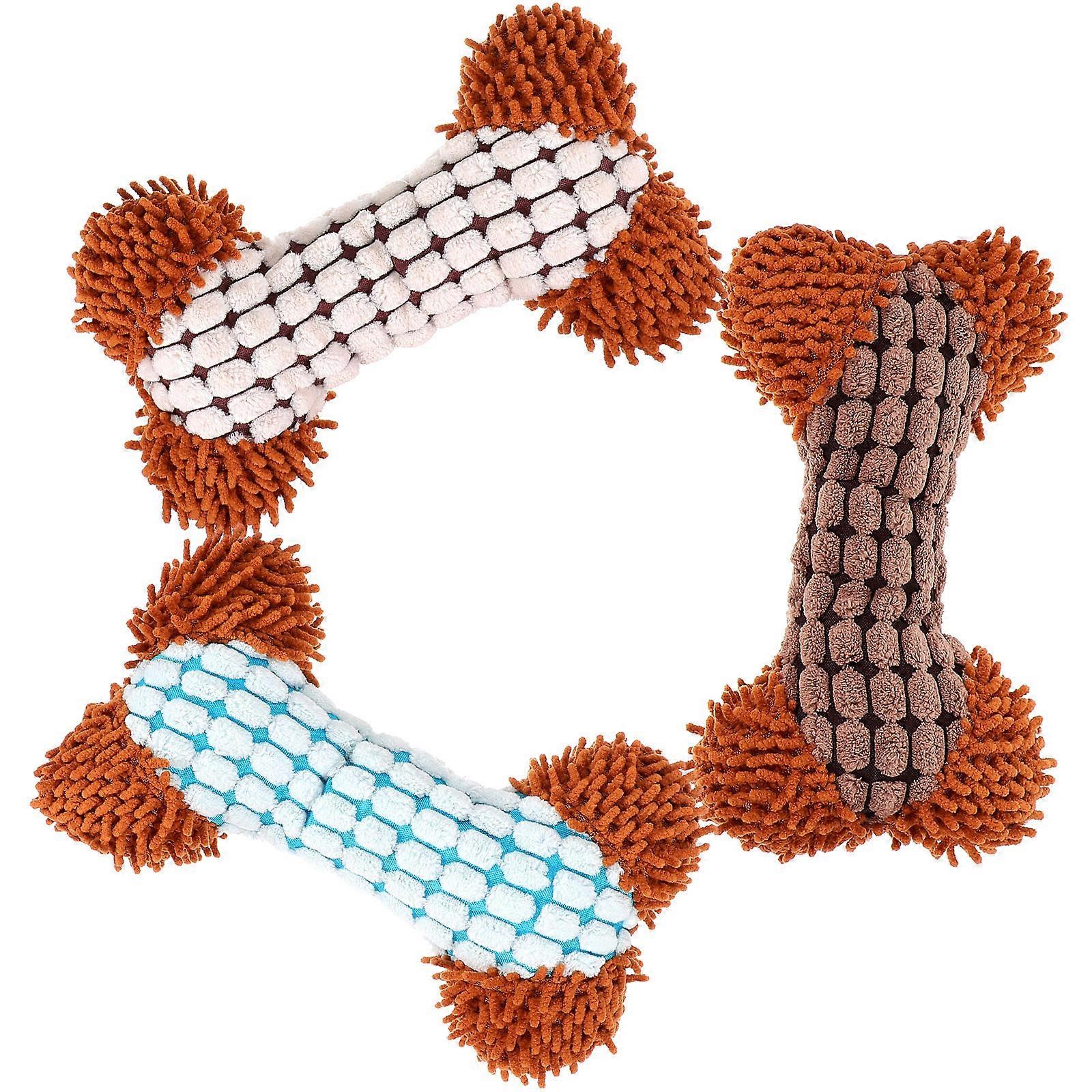 Multifunction Pet Molar Bite Toy Dog Toy With Squeaker Coffee Color 7.3×4.3×2in 3Pcs