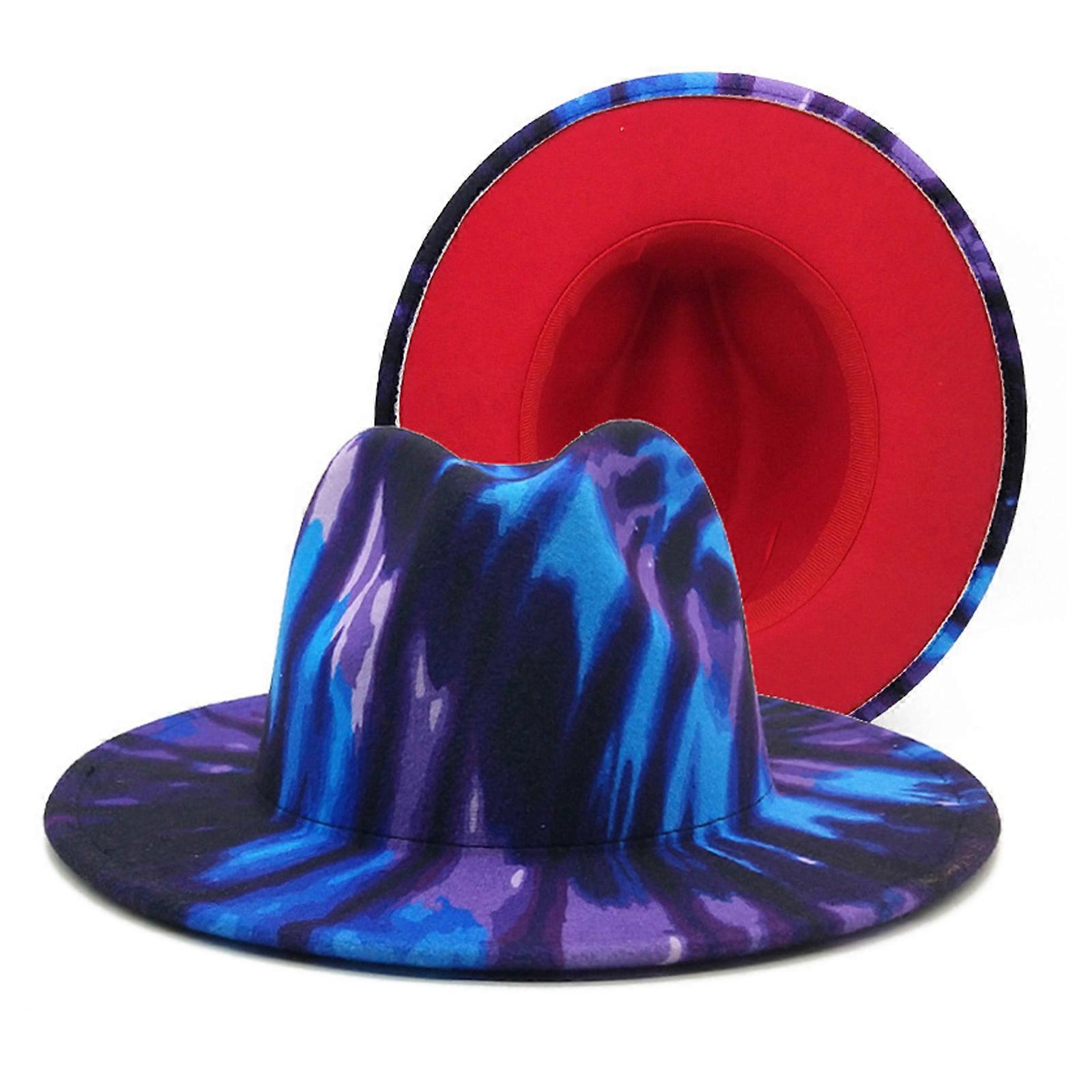 Gorgeous Wide Brim Jazz Hat Felt Hat Cowboy Hat Printed Top Hat Costume Hat Gift for Girlfriend Valentine's Day Black and blue botto