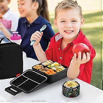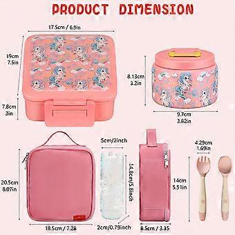 Leak-Proof Bento Lunch Box for Kids with 5 Compartments, Insulated 8oz Food Jar, Ice Pack, Lunch Bag and Flexible Utensils - Perfect for School and Tr