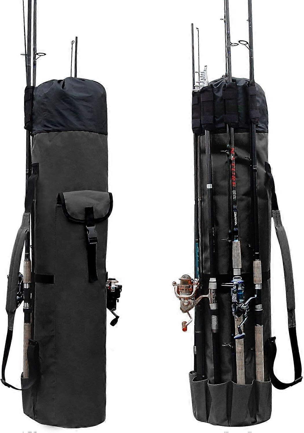 Durable Canvas Fishing Rod & Reel Organizer Bag Travel Carry Case Bag- Holds 5 Poles & TackleArmy Green