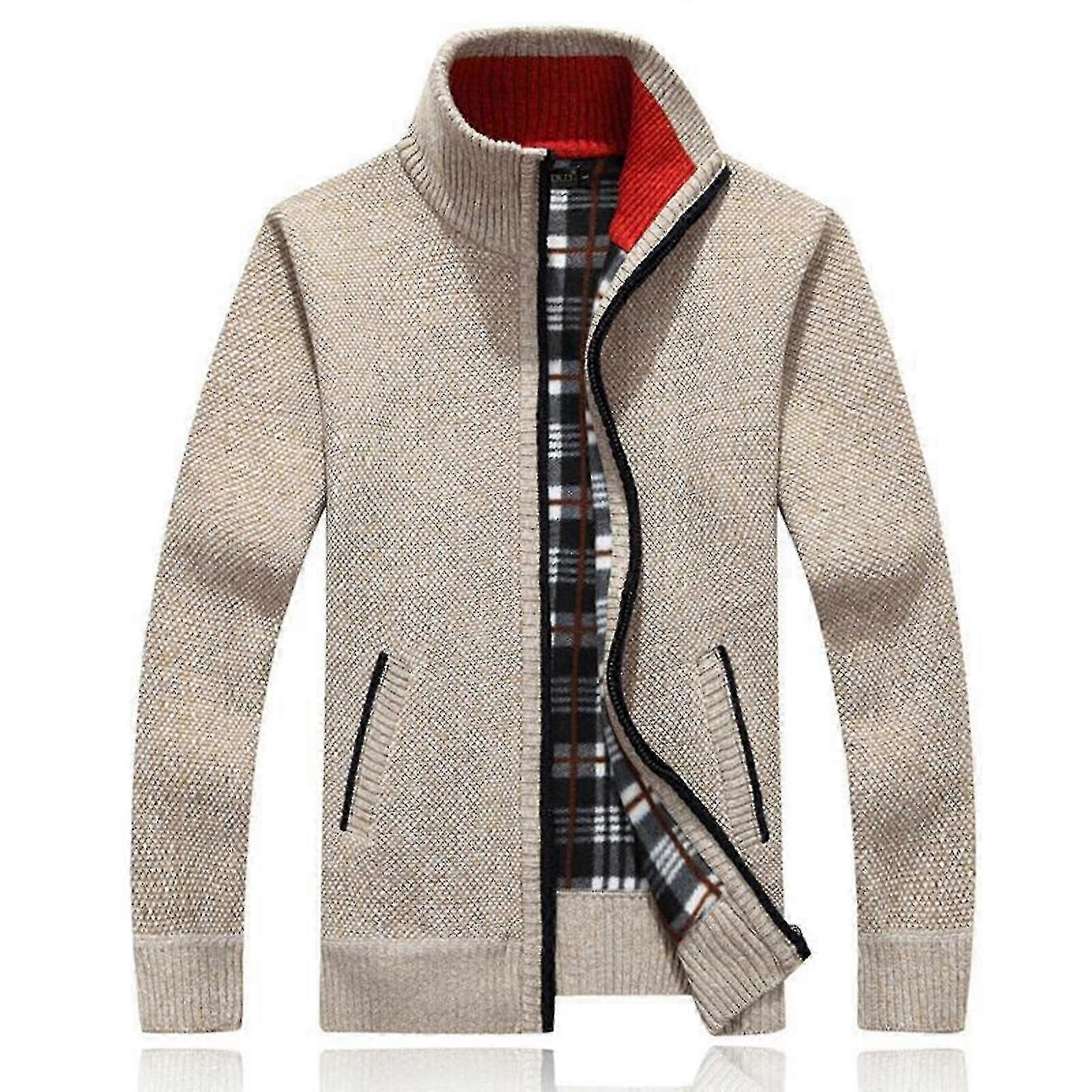 Men's Knitted Cardigan Coat for Autumn and Winter, Casual Outerwear with Zipper and Stand Collar, Suitable for Various Brands