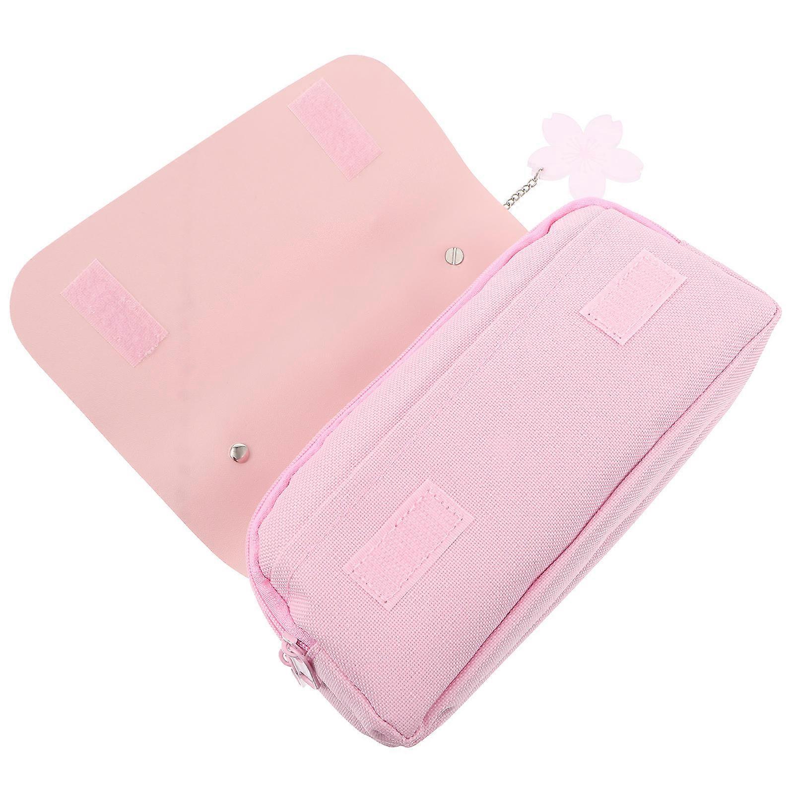 Pink Pencil Case with Large Capacity for Students Made of Oxford Cloth and PU Portable Design