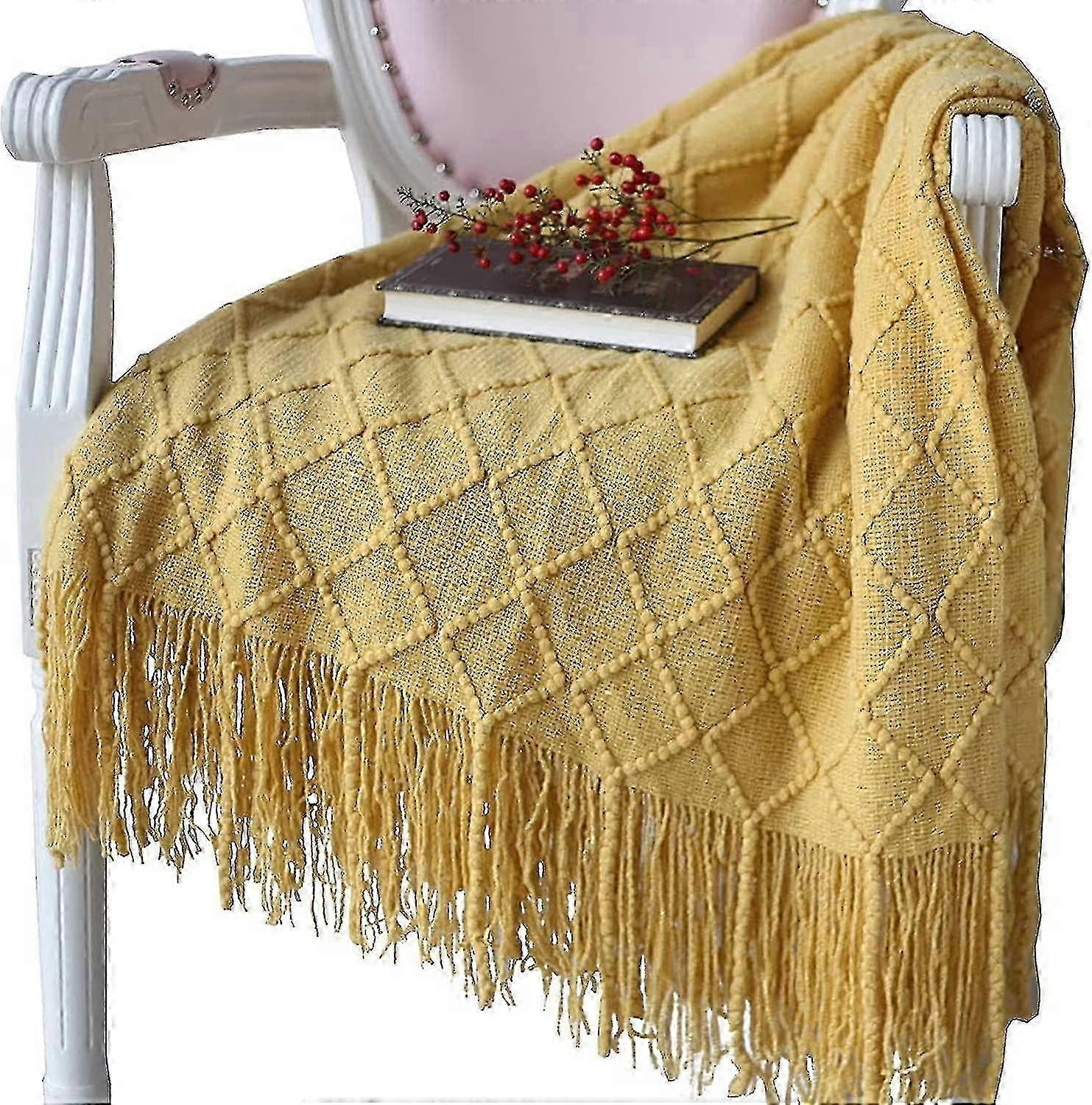 Knitted Blanket Tassel Bed Polishing Solid Nordic Plaid Polishing Fash
