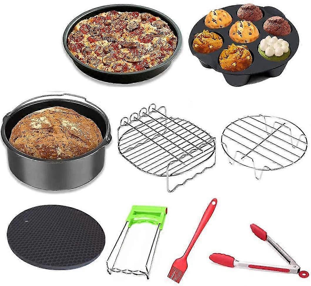 Air Fryer Accessories, 9pcs Airfryer Accessory Kit With Non-stick Coating, Cake Barrel, Pizza Pan, Egg Bites Mold, Metal Holder - For 3.2l And Above X