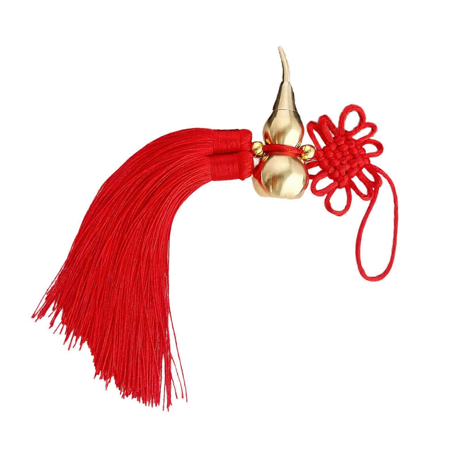 Antique Finish Copper Gourd Charm With Hollowed Design Chinese Knot Tassels Pendant For Home Office Fengshuis Decors Multicolor