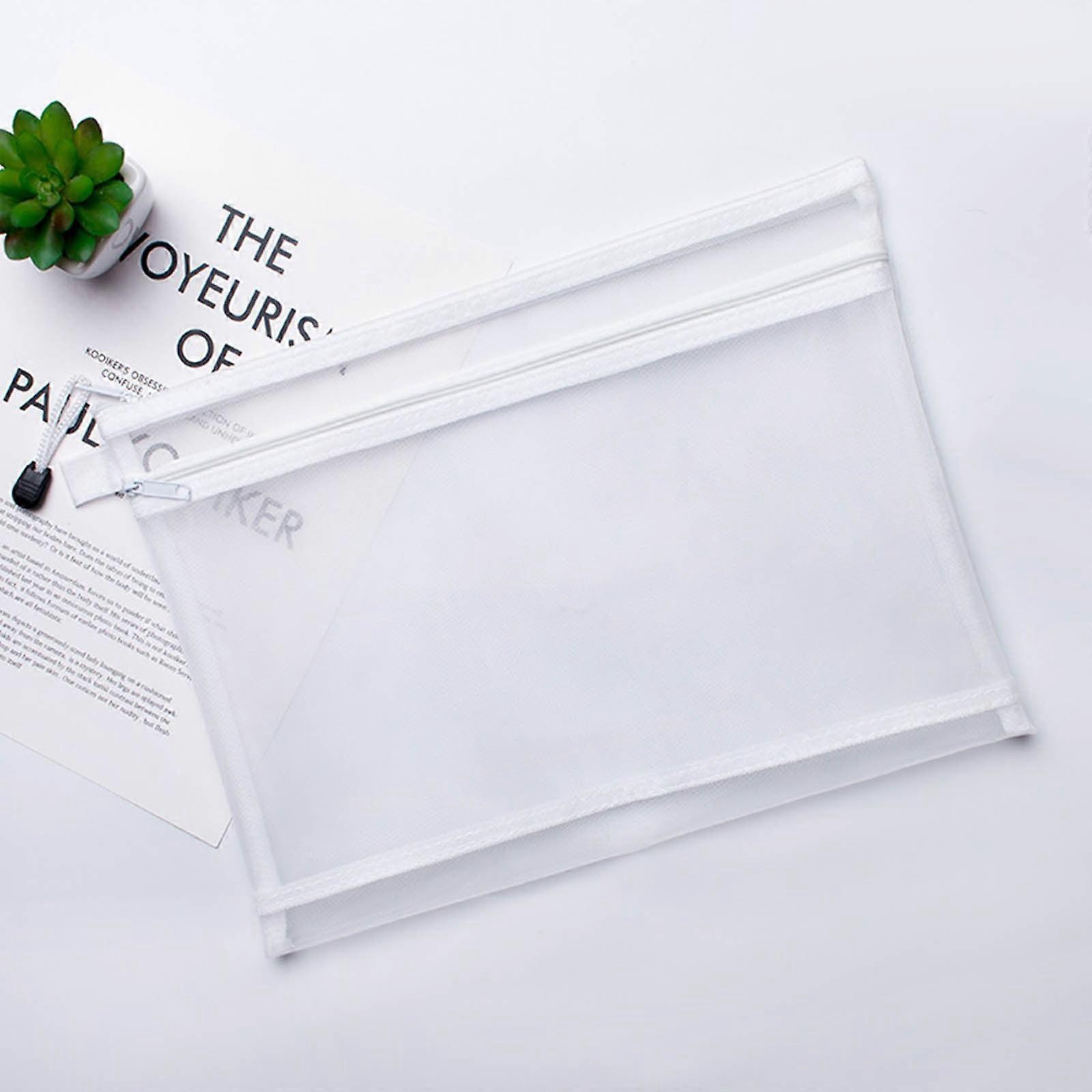 Quinlirra Transparent Double-Layer Mesh File Bag with Zipper, Compatible with School Supplies Storage