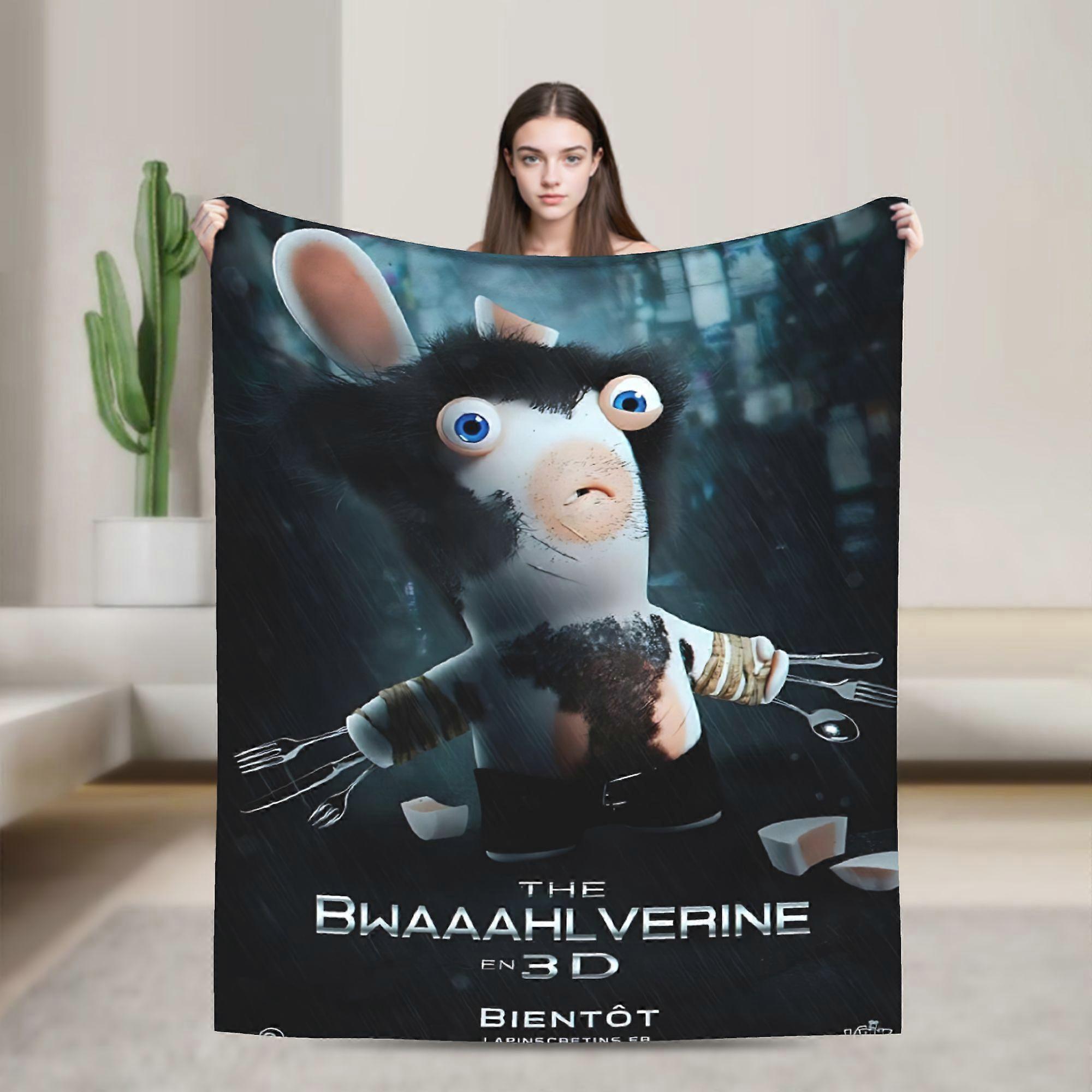 Rabbids Invasion Video Game Character Plush Blanket - Ultra-Soft Flannel with Iconic Rabbid Logo & French Text Design, A-TREAX405