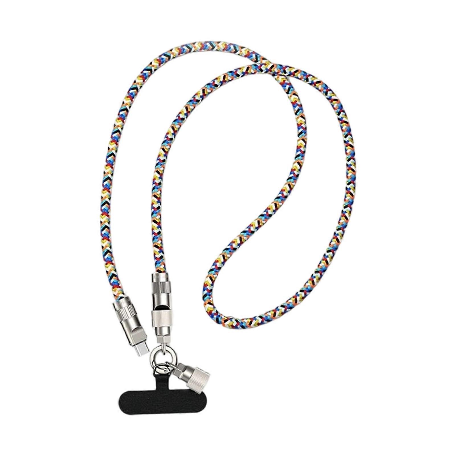 Rainbow Woven USB C to C Cable Phone Tethers 60W Fast Charge Antislip Metal O Rings Design Portable Charging Solution Multicolor