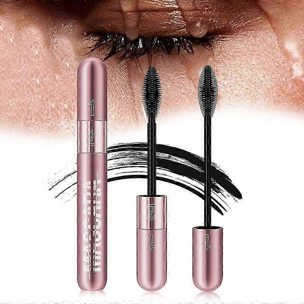 Mascara Waterproof & Smudge-Proof - 2-1 Long-Lasting Mascara Black Volumizing and Lengthening for Eye Makeup, No Clumping, Curling Eyelashes