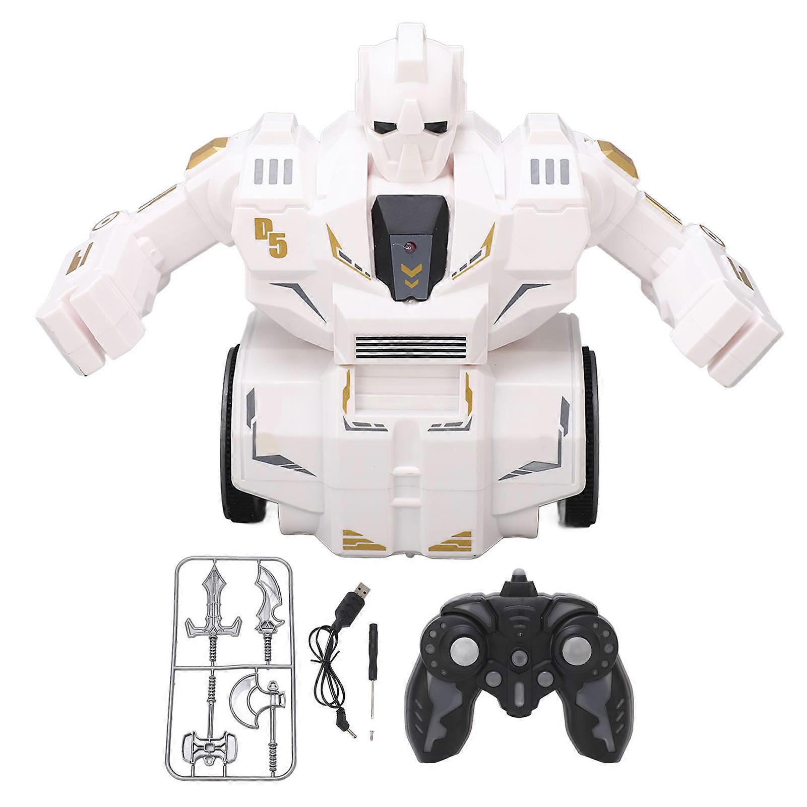 Remote Control Battle Robot Dual Combat Fighting Toy with Rotating Boxing Arms Built-in Battery Included White Durable Model for Kids Assembly Ki