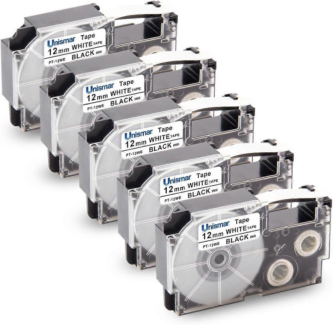 About this item Package Includes: 5 Pack Compatible for Casio XR-12WE Tapes. Color: Black Ink, Print on White Background, Size: 12mm (1/2") Wide x 8m(26.2'') Length. Used for Casio Label Printers: KL-HD1-IH, KL-60, KL-60SR, KL-C500,KL-100, KL-120, KL-130, KL-430, KL-1500, KL-2000, KL-7000, KL-7200, KL-750, KL-750B, KL-750BA, KL-750KITCH, KL-780, KL-8100, KL-8200, KL-8800, KL7000KR, KL7000EDU, KL750KR, KLP1000, KL-G2 etc. Feature: Split Backing for Easy Peel, Water Resistant, Fade Resistant, Abrasion Resistant, Cheal Resistant, Temperature Resistant. Wide Applicability: These label tapes that are ideal for a variety of indoor labeling tasks, make your things all be tidy and clean at a glance. Good for used in home, office, shop, library, school, hotel, restaurant, factory, warehouse, etc