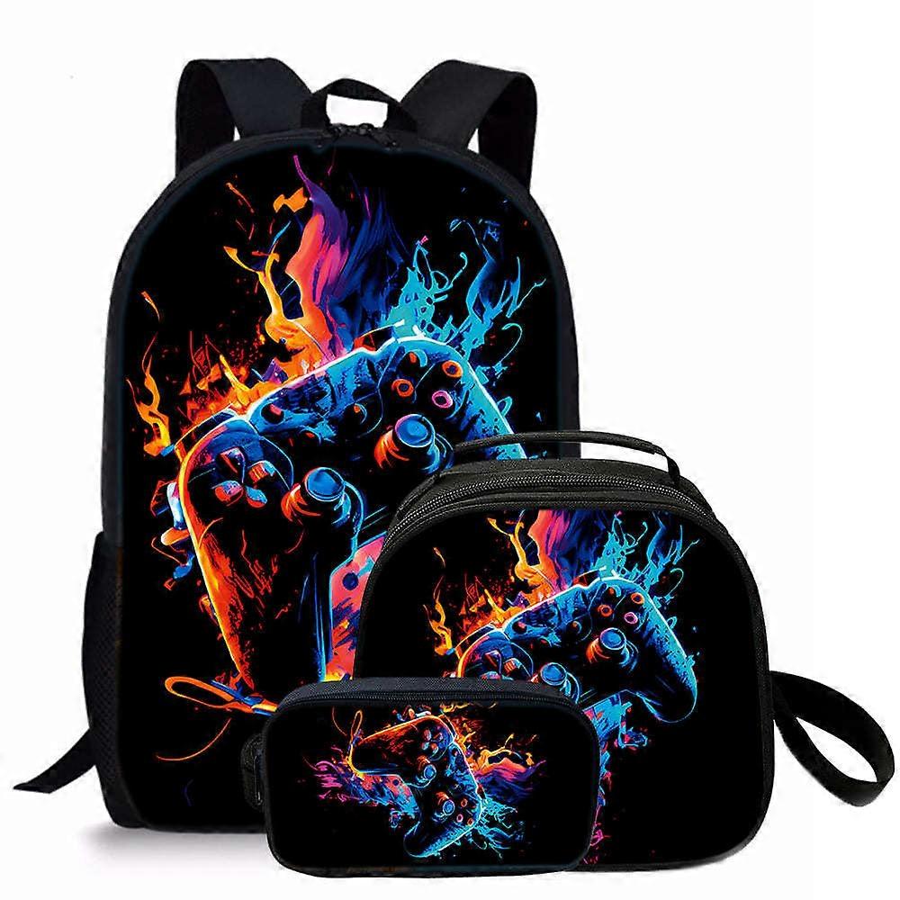 Retro Game Controller DIY Backpack Set for Students Kids - 3 Piece Lunch Bag Pencil Case Combo Multifunctional School Supplies