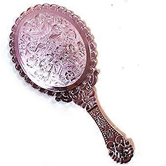 Retro Patterned Handle Cosmetic Mirror Portable Lace Handheld Mirror-Rose Gold