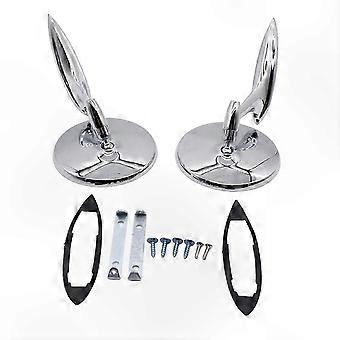 Ribbed Base Round Bowtie Mirrors Compatible with 1962-1965 Chevy Models Accessory