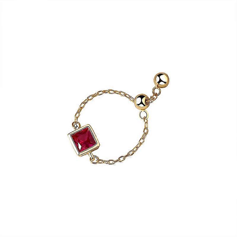 Ring, Women's S925 Silver European American Style Versatile Square Zircon Adjustable Chain Ring