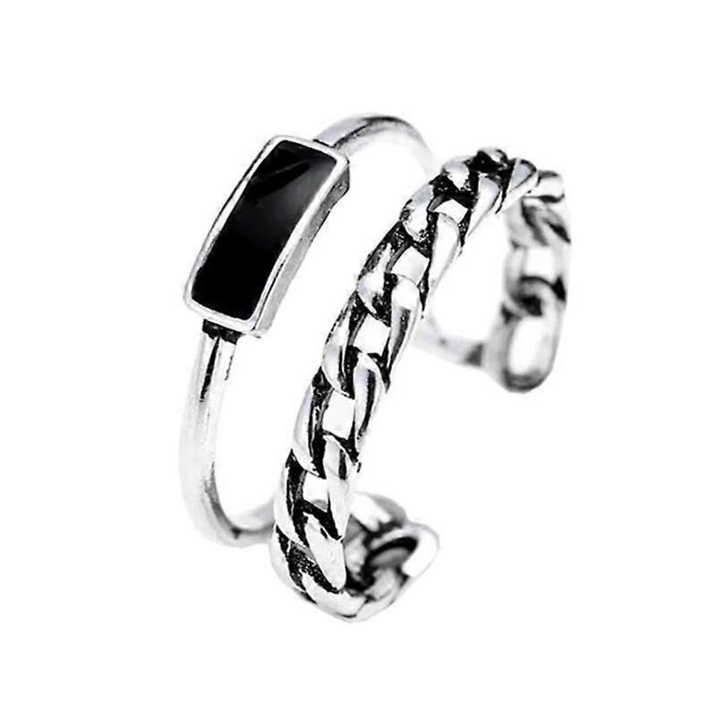Ring, Women's Vintage Double Layer Chain Epoxy Rectangular Geometric Open Ring