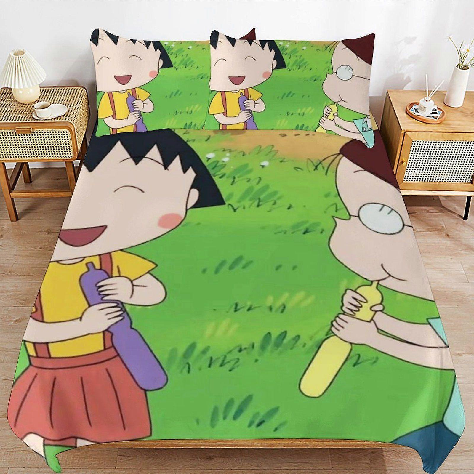 s532 Chibi Maruko-chan Simple Smooth Finish Practical Zipper Closure Soft Bedding Duvet Cover Sets Sleep Essentials v532