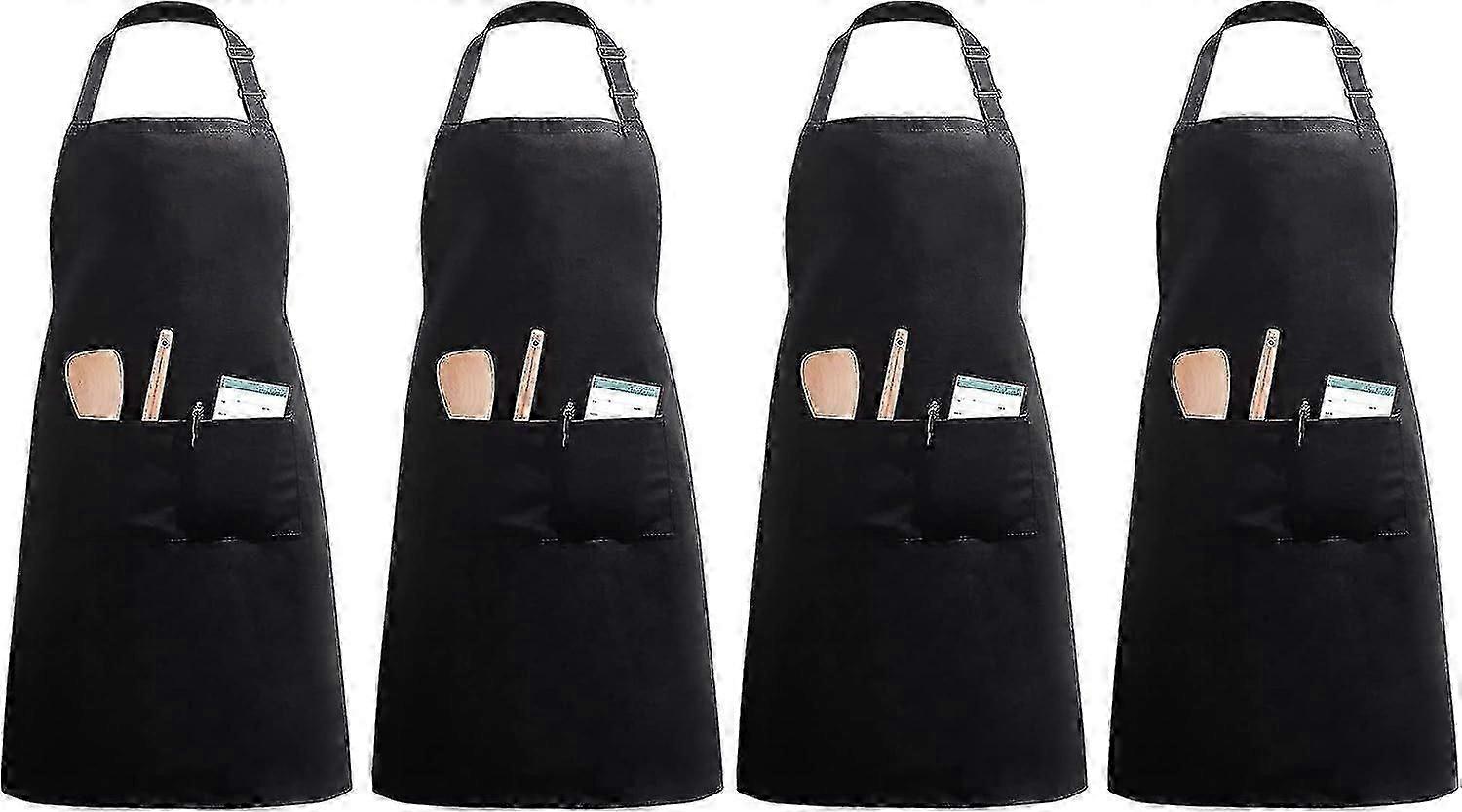 Set Of 4 Aprons With Pockets (black, Polyester)