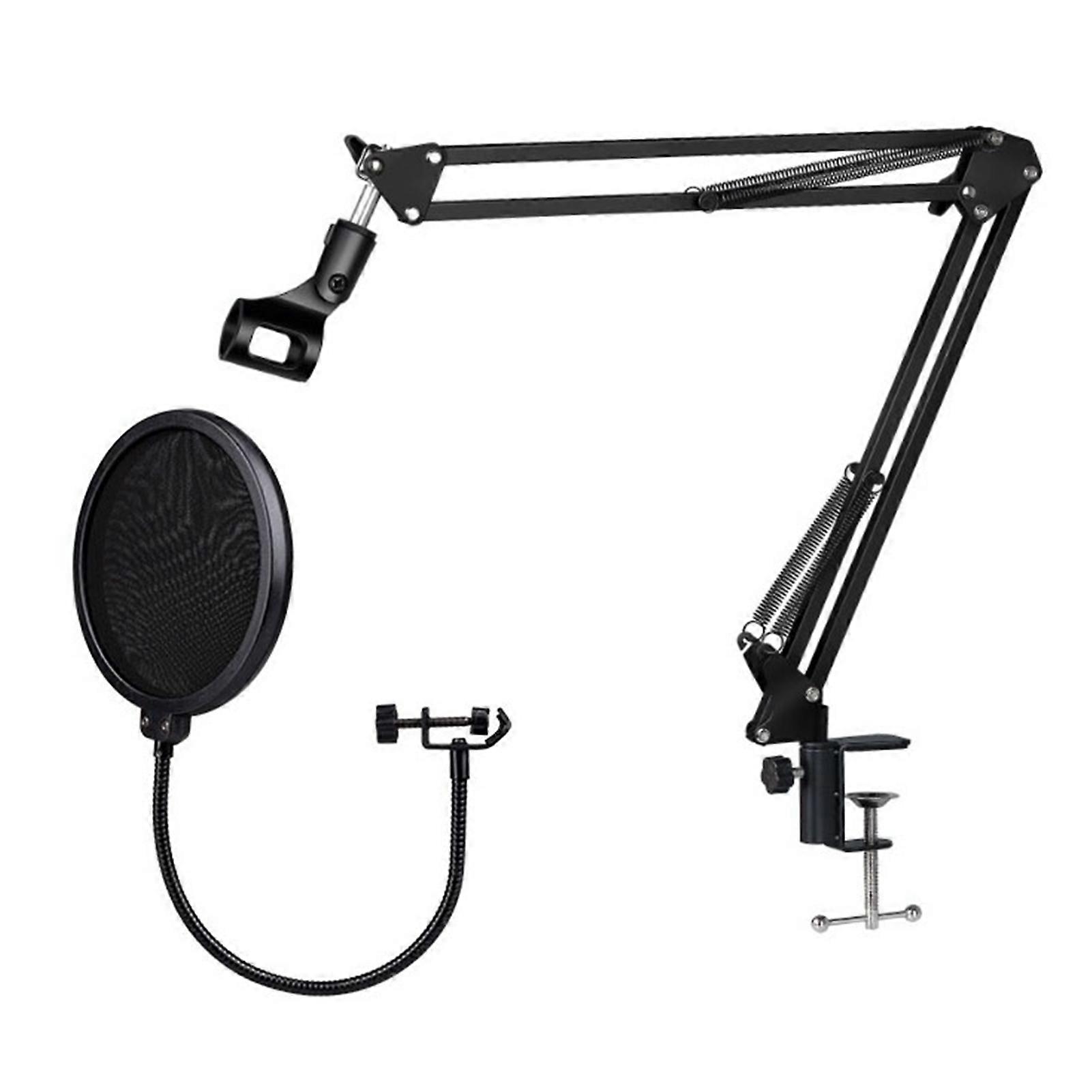 Foldable Microphone Stand Set with Windscreen Filter Black