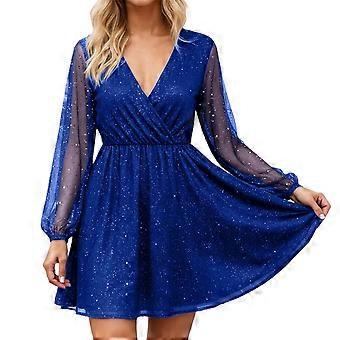 Karnevalové třpytivé šaty pro ženy, sváteční šaty s rukávy ze síťoviny, design střední délky, splývavé párty oblečení