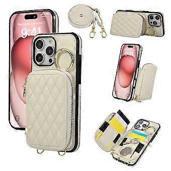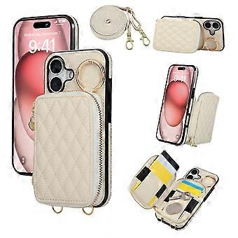 Pouzdro pro iPhone 16 s pouzdrem na zip a pouzdrem na karty z umělé kůže s ramenním popruhem - béžové